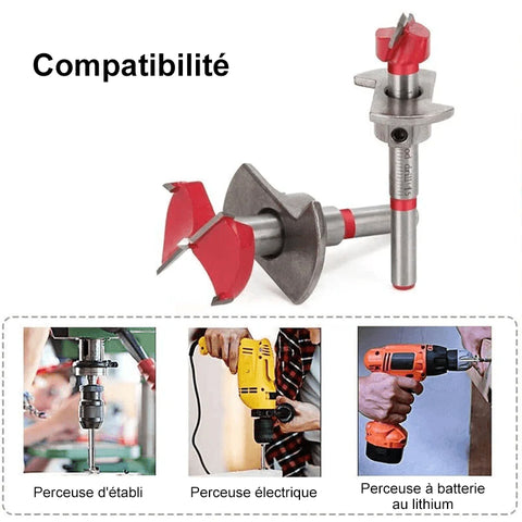Peut être utilisé pour percer des trous sur des produits en bois et en plastique, des meubles, des charnières de porte. Utilisé pour couper du bois, du contreplaqué, des planches en bois massif, du MDF, du plastique, de la fibre de verre, etc. Le foret Forstner est à usage ordinaire.