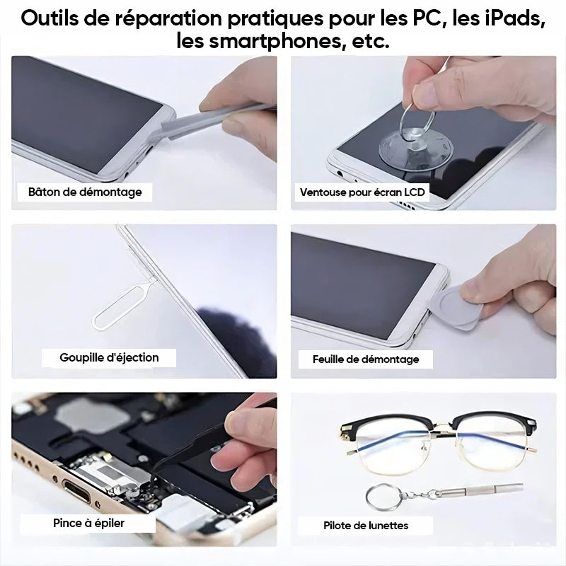 Ce jeu de tournevis de précision avec étui est conçu pour réparer les téléphones portables, les PC, les ordinateurs portables, les Nintendo Switch, les consoles de jeux, les montres, les lunettes, les appareils photo, les Xbox, les autres appareils électroniques, les MacBook Air, les MacBook Pro, les iPhones, les manettes de PS4, les drones...