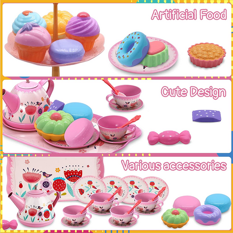 💦Sécurité des jeux de thé pour enfants: La vaisselle est faite de matériaux métalliques sûrs. Le dessert en plastique sans BPA peut être directement touché par les enfants et peut jouer en toute confiance. L'ensemble de thé est facile à nettoyer et durable. profitez du temps de jeu !