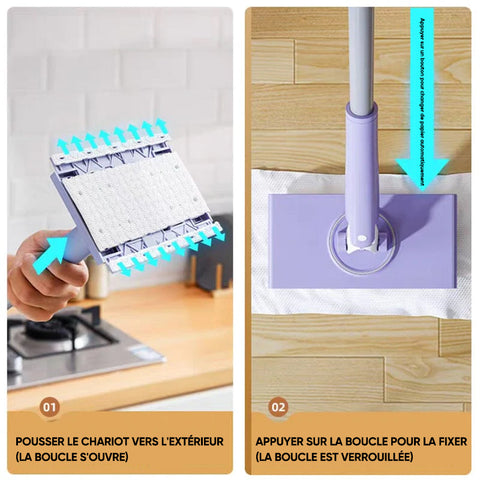 Options de tissu polyvalentes : Qu'il s'agisse de serviettes usagées ou de lingettes jetables, ce balai peut nettoyer efficacement les pièces, en favorisant la réutilisation des serviettes et en minimisant les déchets sans aucune hésitation.