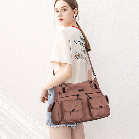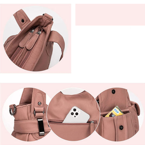 Le sac a une grande capacité et une conception multi-poches. Il est pratique de ranger les nécessités quotidiennes telles que les lunettes de soleil, le téléphone portable, la carte de bus, etc.