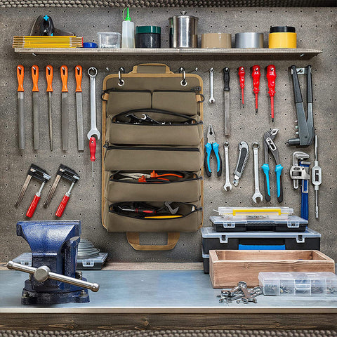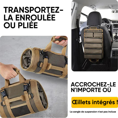 【Facile à transporter】Organisez vos outils et accessoires dans un petit rouleau à outils à suspendre dans votre voiture, votre garage ou votre lieu de travail.