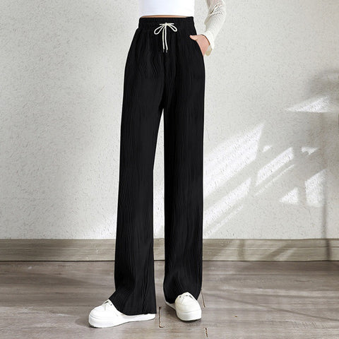 La conception plissée dissimule bien la graisse sur la jambe, ce qui donne à votre jambe une apparence mince et élancée. Jambe droite large, coupe ample Convient à toutes les femmes.