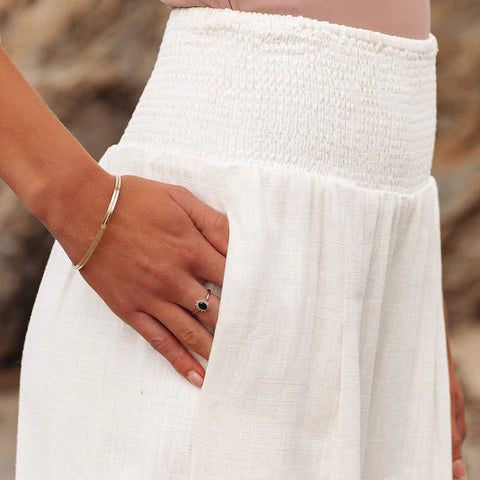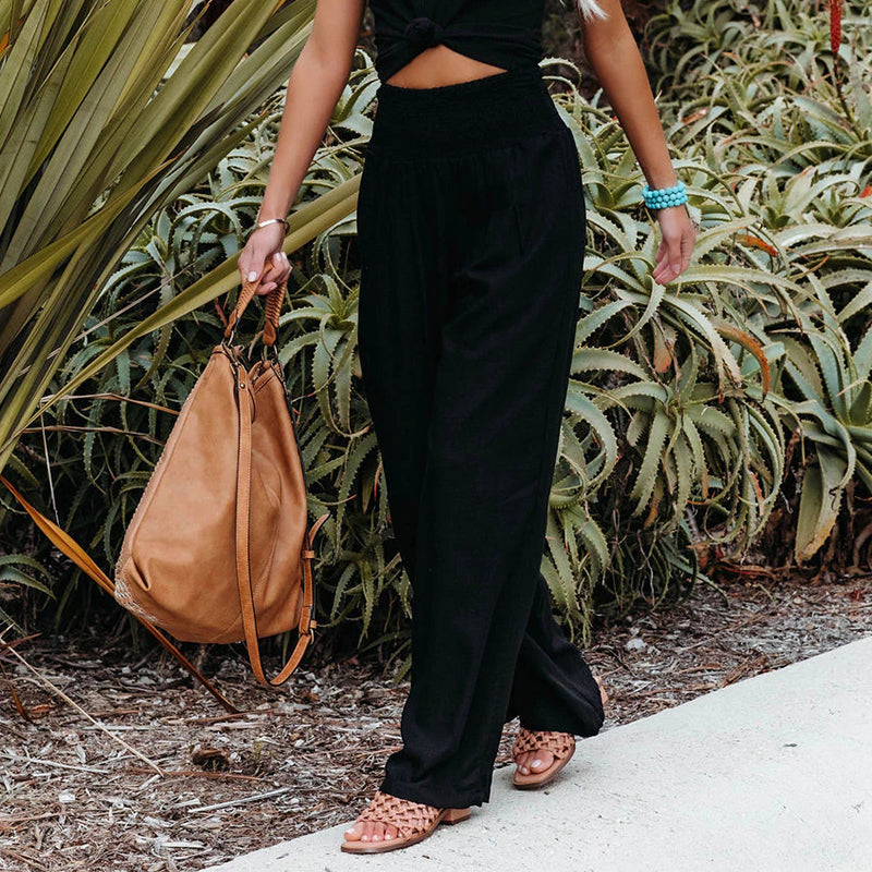 - 1 * Pantalon smocké à poches en mélange de lin Fresh Air
