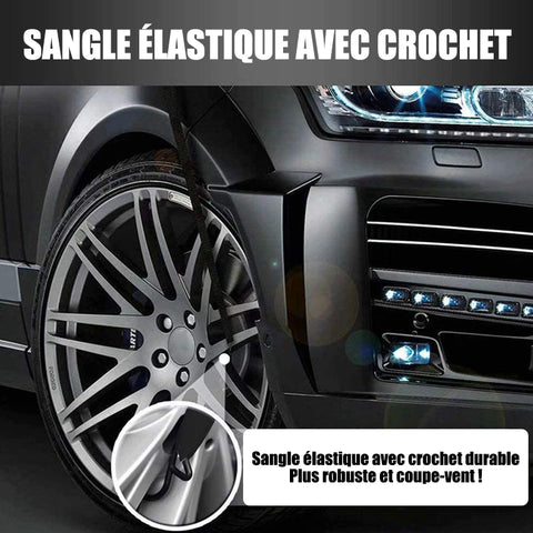 Grâce aux deux sangles de fixation, à la couche inférieure isolée en PVC et aux deux rabats latéraux, notre housse de protection contre la neige pour voiture tient bien en place sans glisser ni être emportée, même par les vents les plus violents.