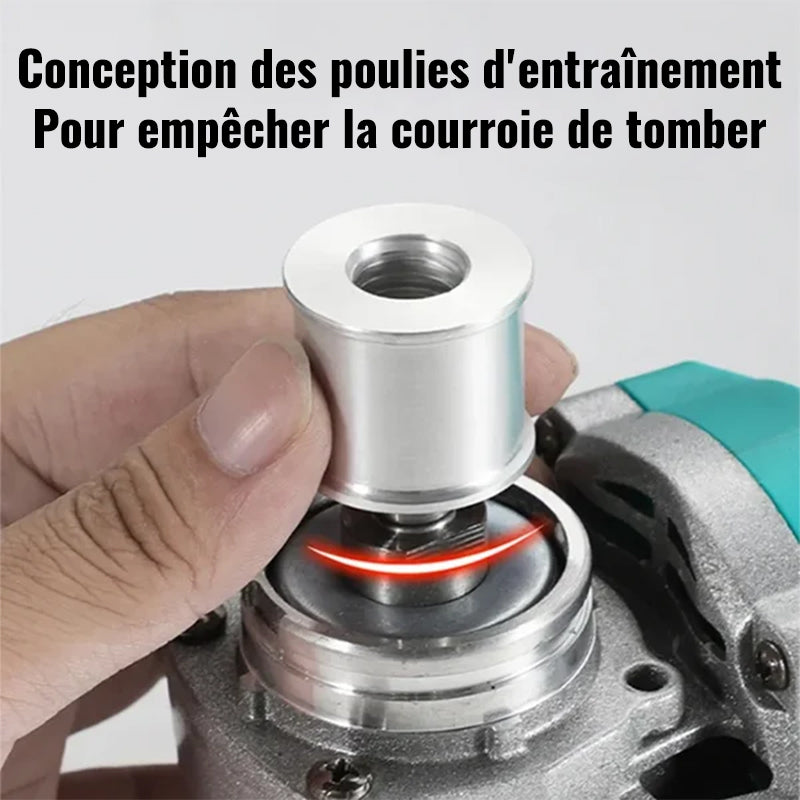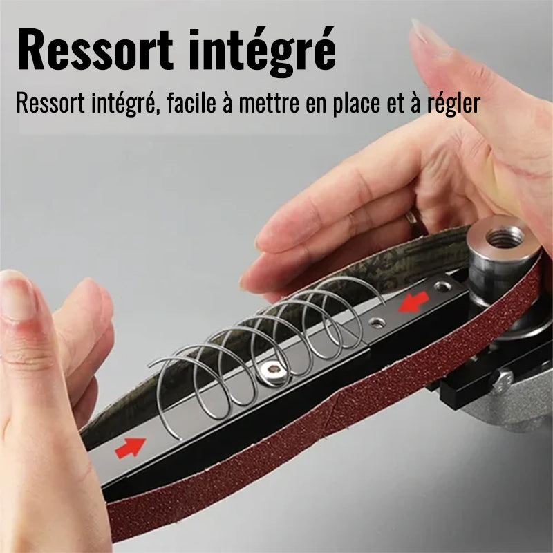 MODIFICATION MULTIFONCTIONNELLE: Ce produit est conçu pour fonctionner comme une ponceuse à bande en modifiant la ponceuse d'angle. Cela signifie que les utilisateurs peuvent effectuer plusieurs travaux tels que le ponçage, le meulage et le polissage sur le même appareil sans avoir à acheter une ponceuse à bande supplémentaire, ce qui permet d'économiser de l'espace et de l'argent.