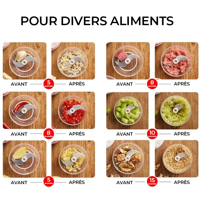 • ✅Outil en acier inoxydable de haute qualité : peut vous aider à terminer la coupe en quelques secondes. Ce hachoir portatif peut hacher des oignons, de l'ail, des noix, du céleri, des poivrons, de la coriandre et bien plus encore pour répondre à une variété de besoins d'assaisonnement.