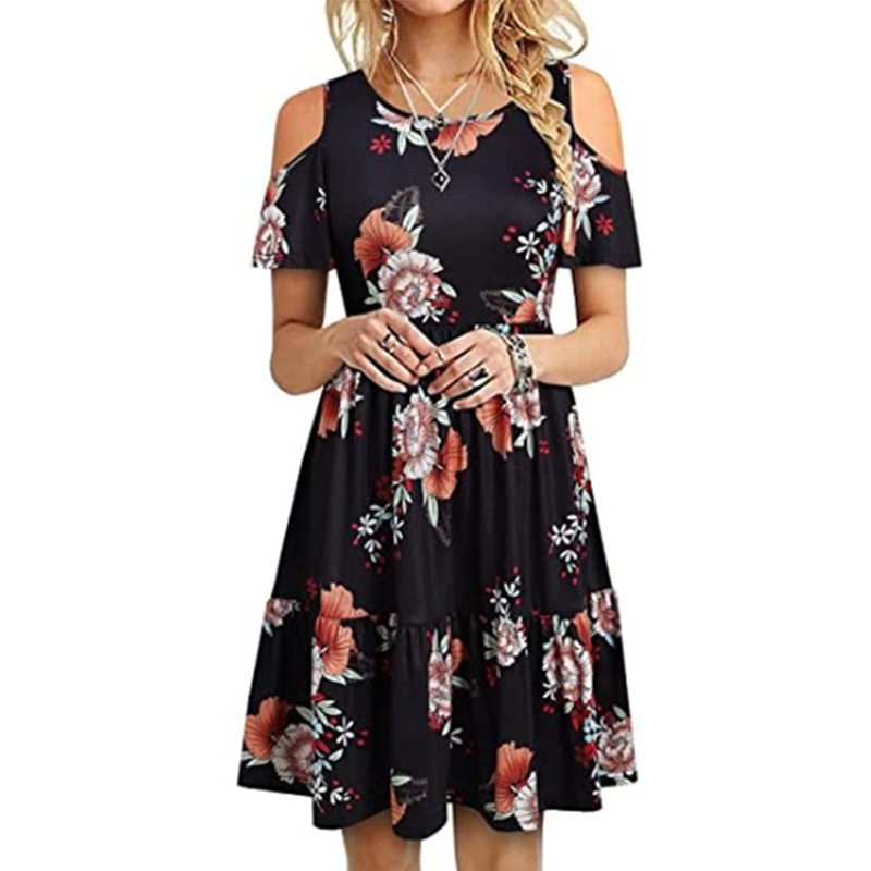 ♥ Design: robe à col rond et épaules dénudées avec un motif mignon et frais. Cette robe vous fait paraître plus mince et plus grande.