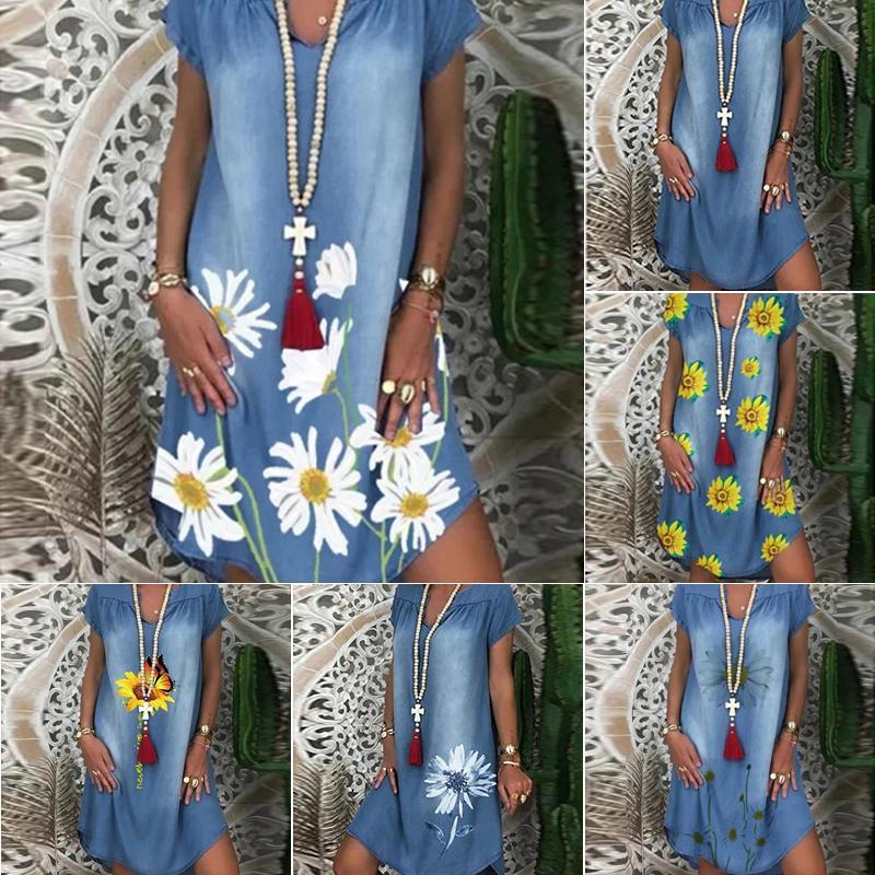 - 1 × Robe Décontractée à Motif Imprimé pour Dames