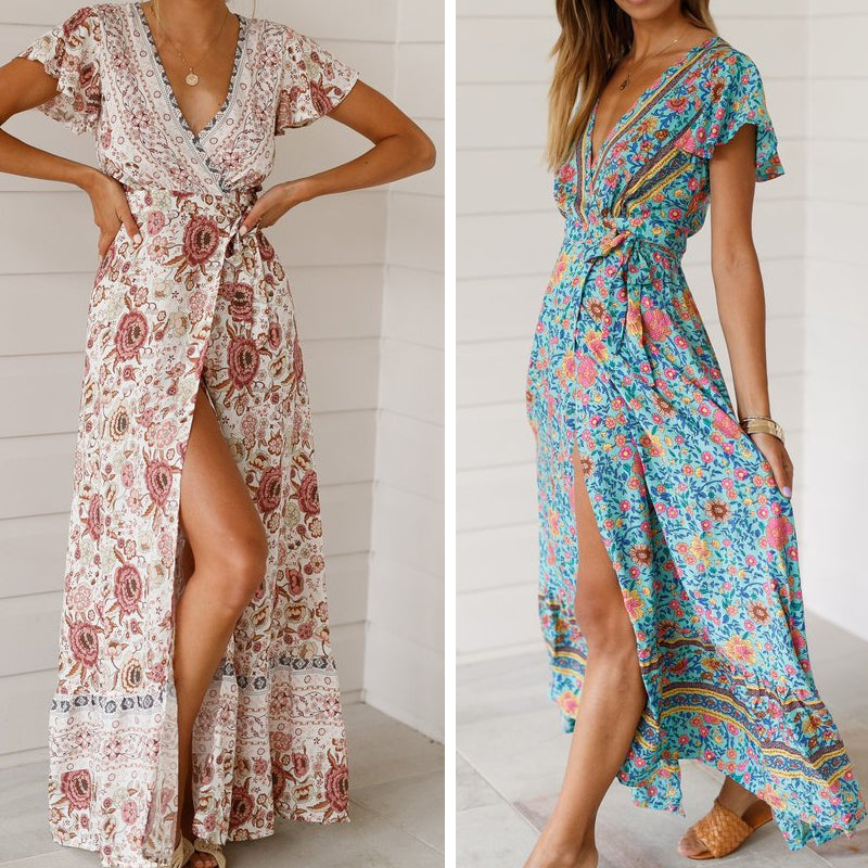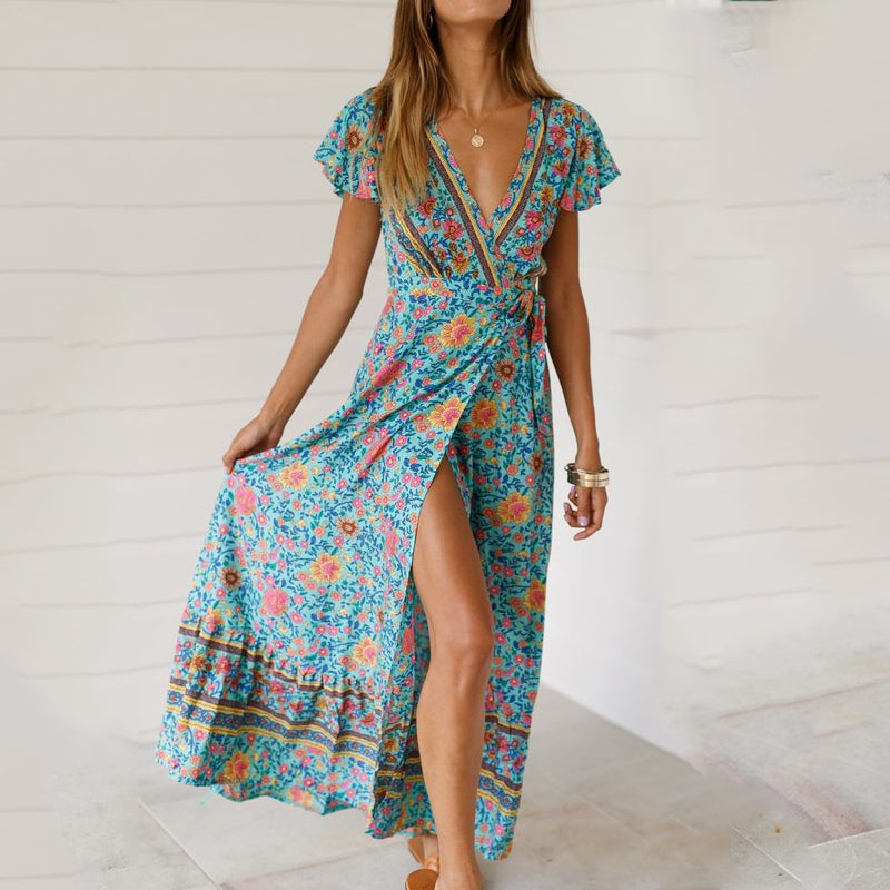 ☀ les principales caractéristiques/détails de la robe : décolleté en V profond, bretelles spaghetti, sans manches, longueur cheville maxi, silhouette ample, taille haute et taille élastique extensible.