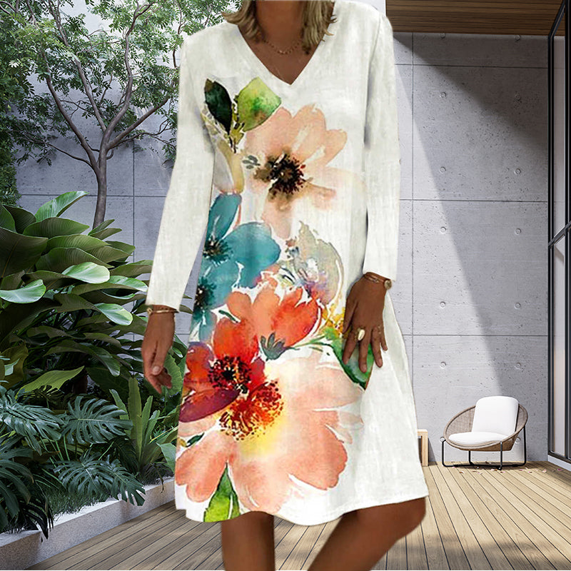 • 1 * Robe imprimée à manches longues et col rond