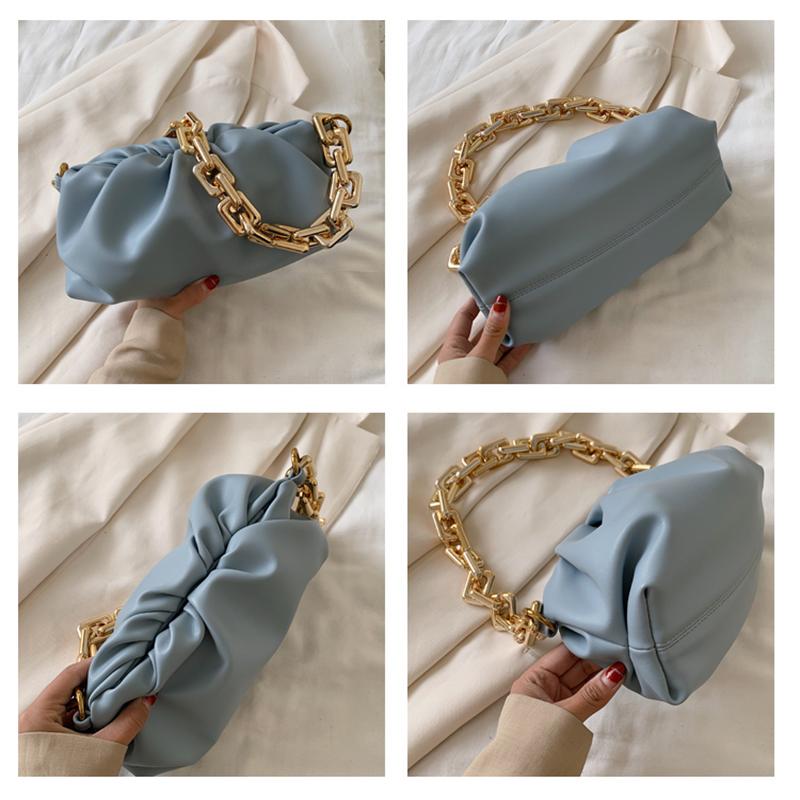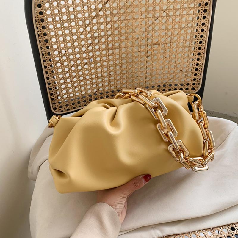 Le tout nouveau sac à bandoulière nuage en cuir PU lisse et quincaillerie dorée à plis doux, de couleur unie, doux, durable, délicat et facile à nettoyer. L'intérieur est en cuir souple pour garder vos essentiels en toute sécurité.