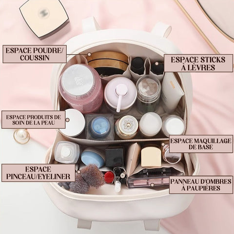 【Rangement multifonctionnel】Cette trousse de maquillage peut non seulement stocker des cosmétiques, mais aussi des bijoux, des accessoires électroniques, des appareils photo, des huiles essentielles, des articles de toilette, des fournitures de rasage, des lunettes, des objets de valeur et bien plus encore. Les compartiments classés par catégories permettent de garder facilement vos différents produits propres et en sécurité.