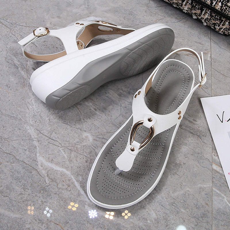 Sandales compensées plates pour femme, très légères et confortables. Fermeture à boucle pour un style élégant et décontracté qui complète facilement vos tenues de tous les jours.