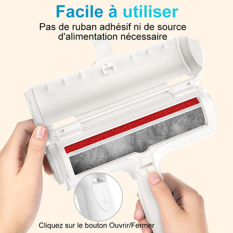FACILE À UTILISER: Roulez rapidement la brosse anti poil magique d’avant en arrière, une charge électrostatique se créée, Les rouleaux capturent tous les cheveux d'animal familier et le velours de coton dans le récipient de poussière.