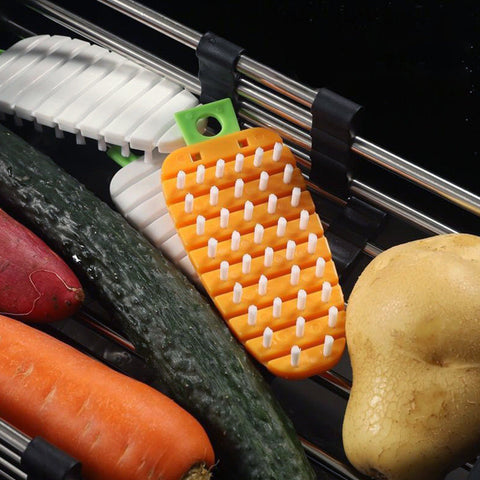【Nettoyeur de brosses à légumes】Mini brosse à doigts amusante et mignonne, brosse à carottes pliable, brosse en soie de maïs au design ergonomique, nettoyage très puissant. Il peut mieux vous aider à nettoyer les peaux mortes et les taches sur des surfaces comme les pommes de terre, les carottes, les patates douces, le maïs, les concombres, les pommes, les ignames et plus encore.