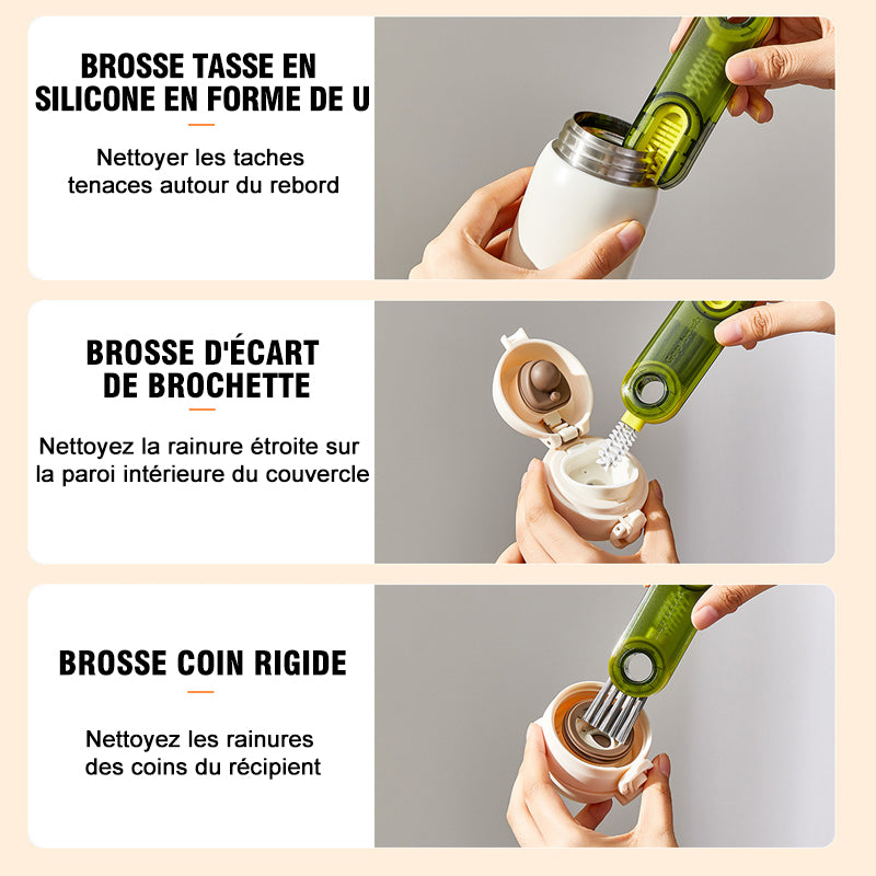 Brosse de nettoyage 3 en 1: Notre brosse de nettoyage se compose de trois parties : brosse de nettoyage de bouteille, brosse blanche et garniture de retrait. La brosse de nettoyage de la buse peut être utilisée pour nettoyer la saleté dans la rainure, le dispositif de démontage est utilisé pour soulever la bague d'étanchéité et nettoyer l'espace, et la brosse blanche peut nettoyer la saleté du bouchon de la bouteille.