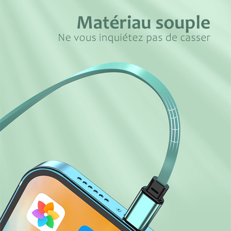 Nos incroyables câbles de charge ont plusieurs couches de protection pour que vous n'ayez pas à vous soucier des coupures de câble ou de quoi que ce soit d'autre.