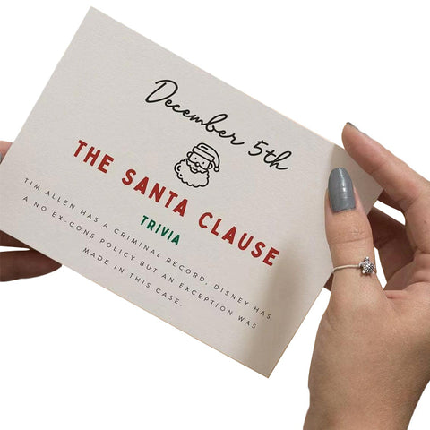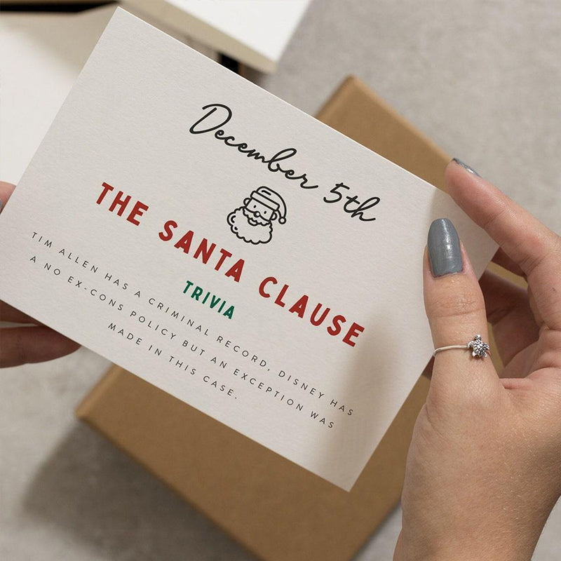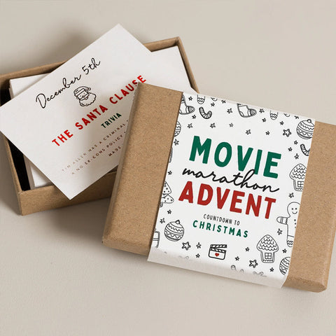 🎅🎄Chaque boîte de notre calendrier de l'Avent de luxe contient 24 cartes avec des noms de films de Noël et des anecdotes amusantes! Un beau cadeau pour lui, la famille ou pour tout fan de cinéma!