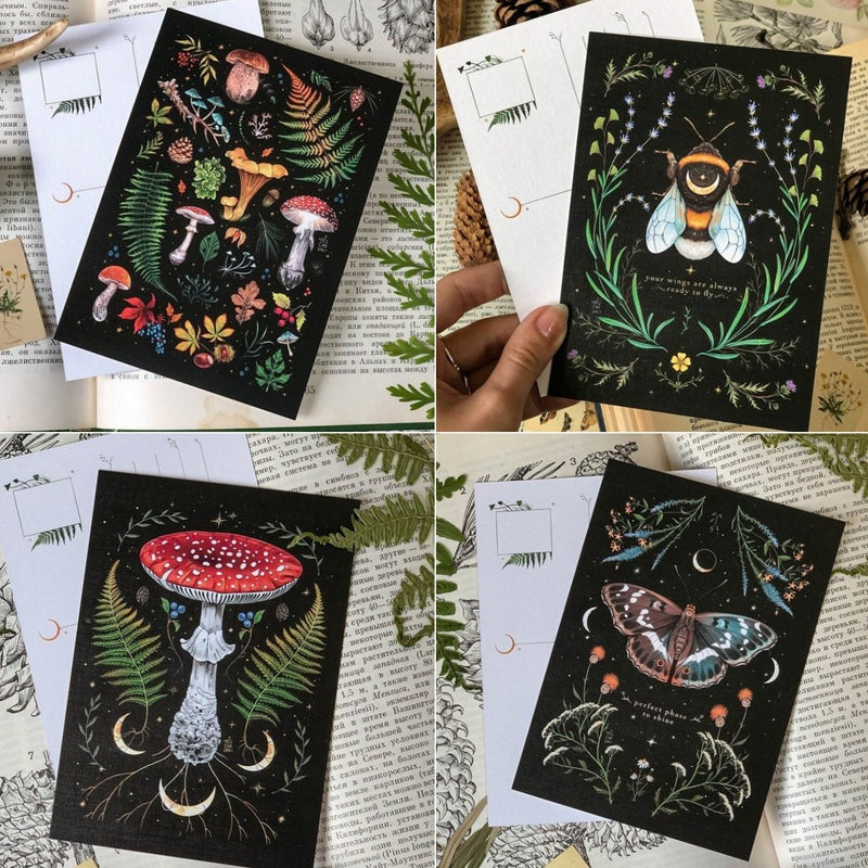 ✧Dark Forest Moon Calendar 2022/2023: Il comprend 12 illustrations originales que j'ai dessinées tout au long de l'année. Motifs botaniques, créatures et plantes magiques, forêt, nature, vie sauvage, lune et étoiles et le pouvoir en nous. La grille avec toutes les informations et symboles a été fabriquée à la main.