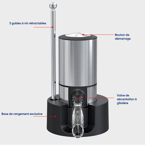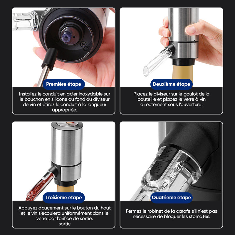 - Distributeur de vin + tube en acier inoxydable + base de rangement + câble de chargement USB
