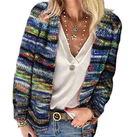 • 1* Cardigan à Rayures Arc-en-ciel pour Femme