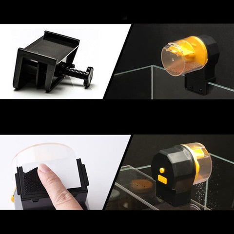 🐟【Deux méthodes fixes différentes】Notre mangeoire à poisson est conçue avec 2 méthodes d'installation pour répondre à différents besoins. L'une consiste à fixer le chargeur à la paroi du réservoir en utilisant le holder. Another is to paste the feeder with double-side sticker on the tank cover.