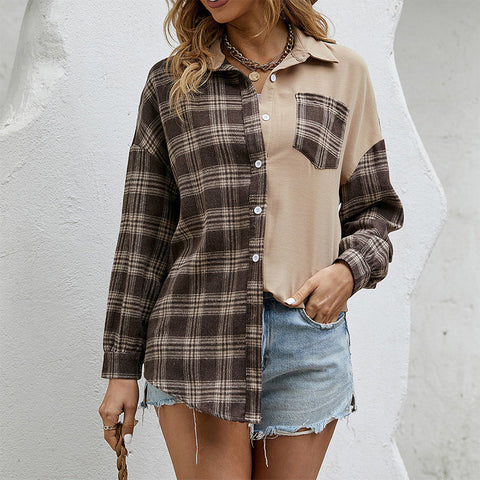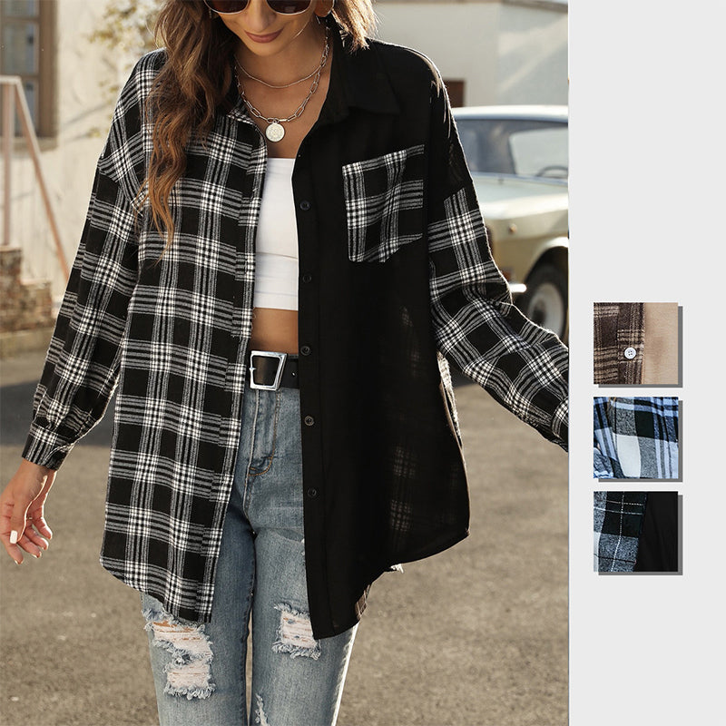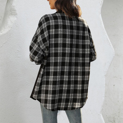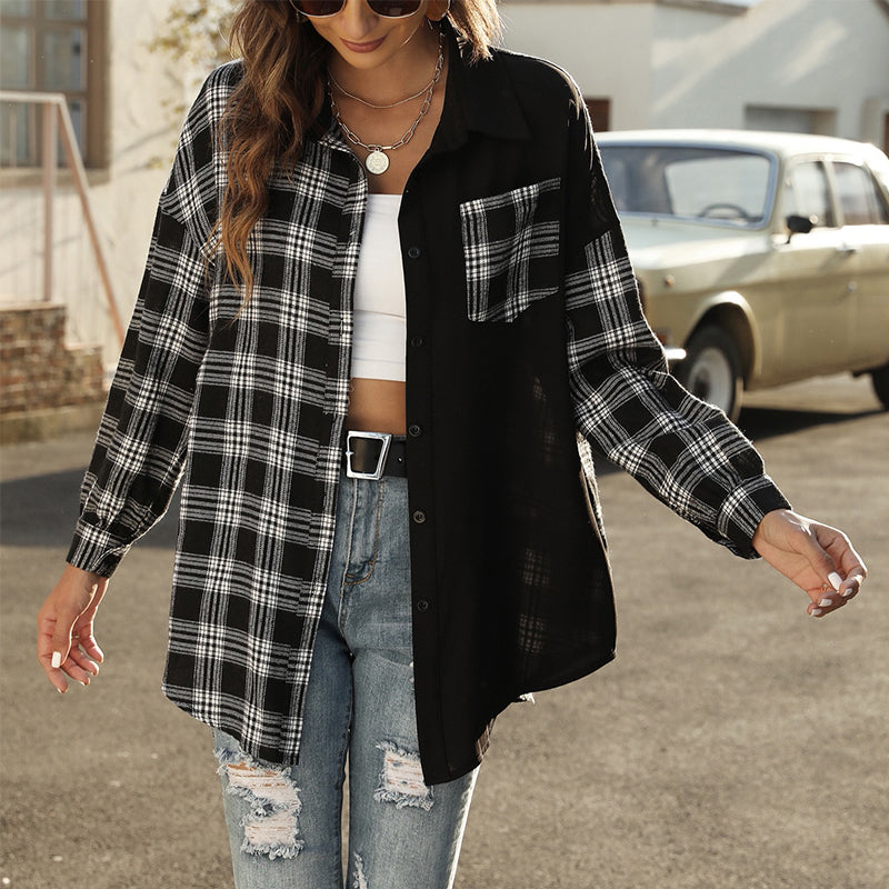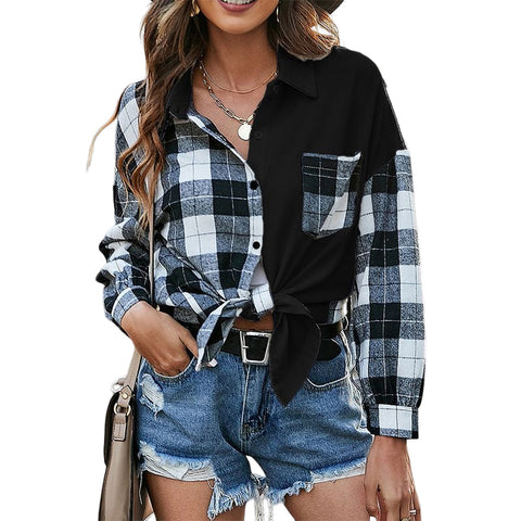 Chemise ample décontractée à carreaux asymétriques pour femmes