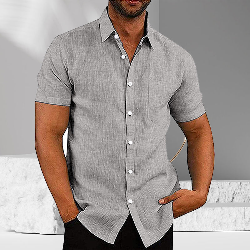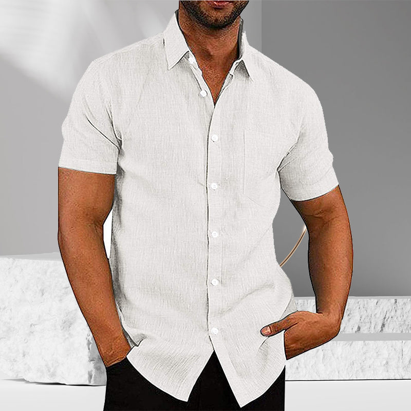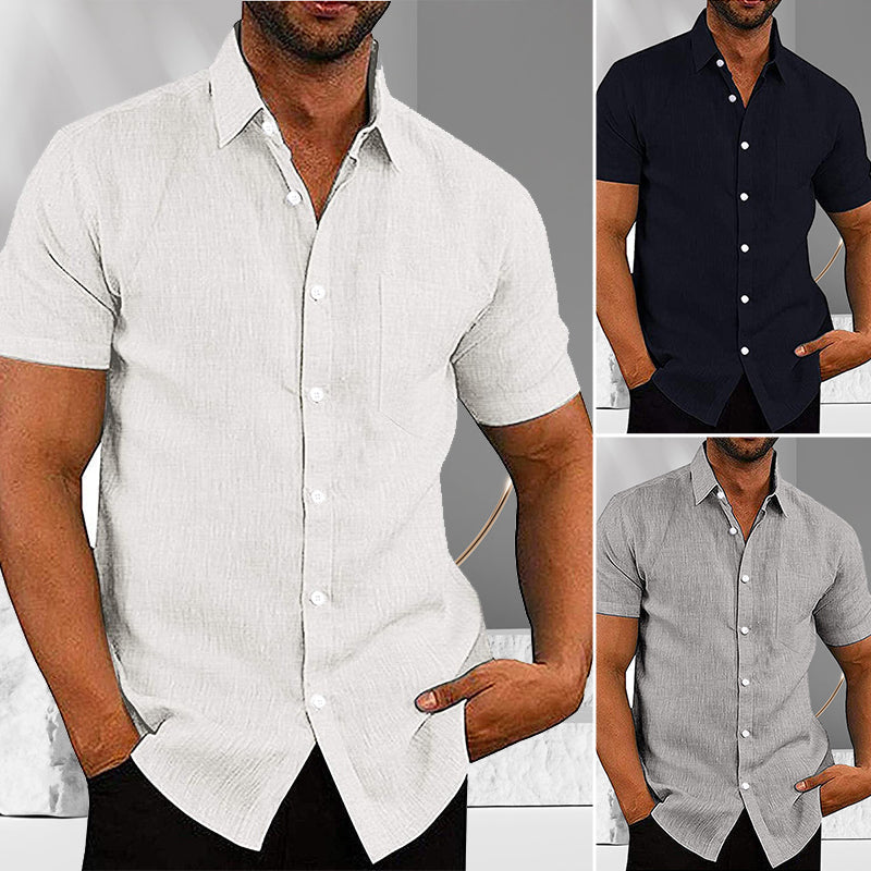 - 1 * Chemise boutonnée à manches courtes en lin de couleur unie pour hommes
