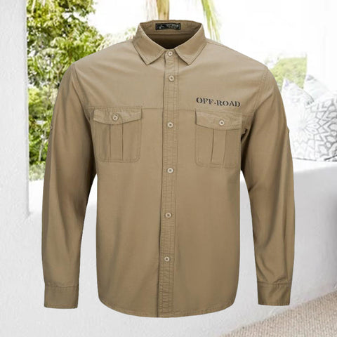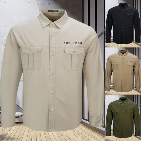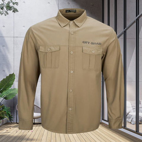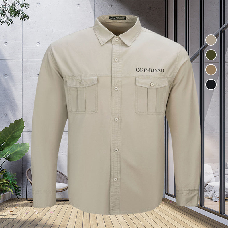 • Design: Chemise cargo en coton pour homme avec patte à bouton-pression, col italien, deux poches à bouton-pression sur la poitrine, poignets boutonnés, manches longues, non extensible, coupe classique.