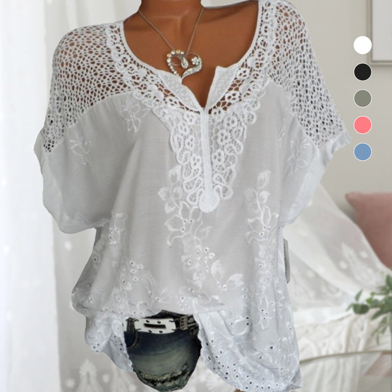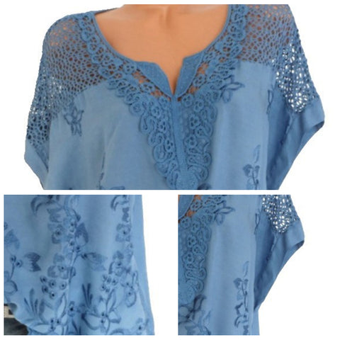 - 1 * Chemise chauve-souris brodée à manches courtes