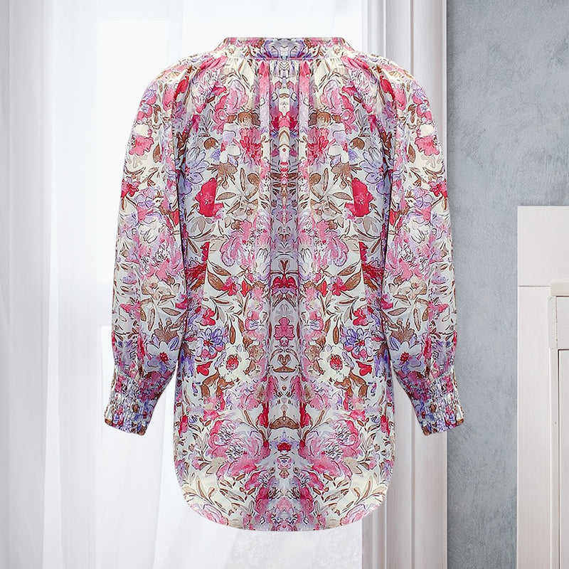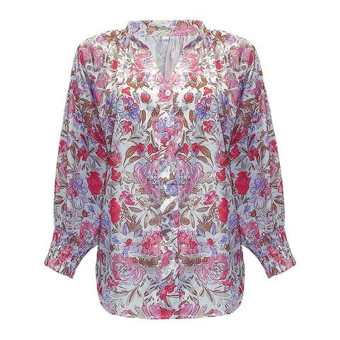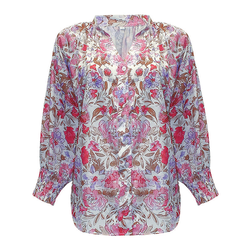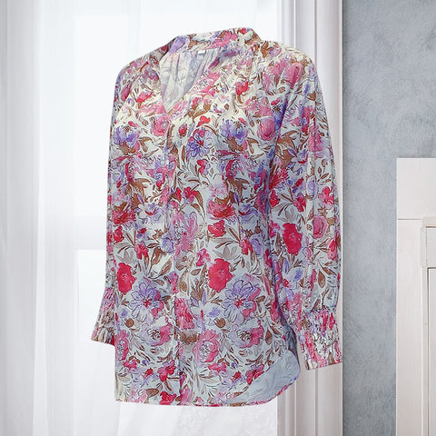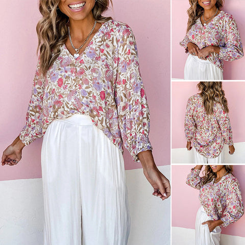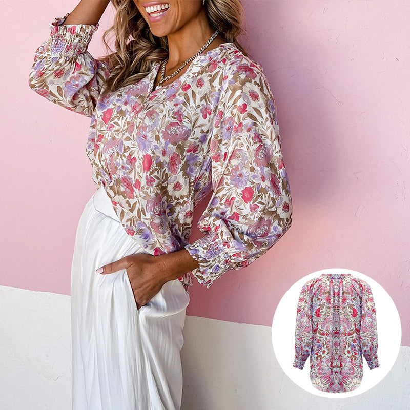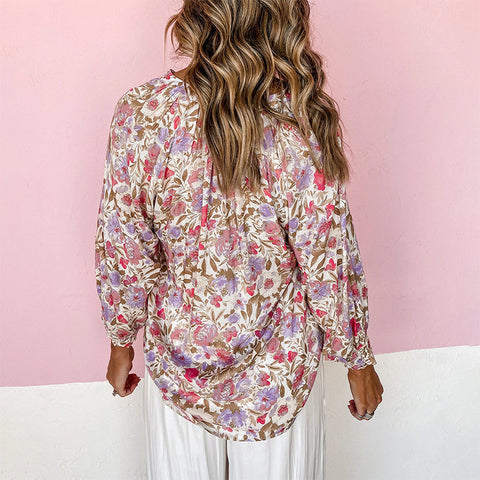 Chemise Décontractée à Manches Longues et Col en V à Fleurs