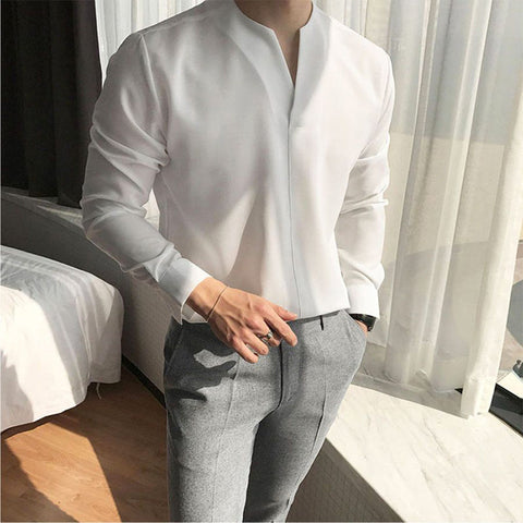- 1* Chemise décontractée à manches longues et col en V pour hommes