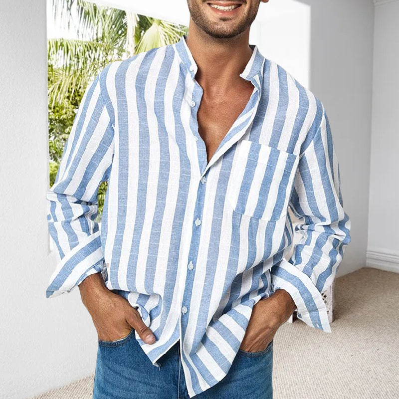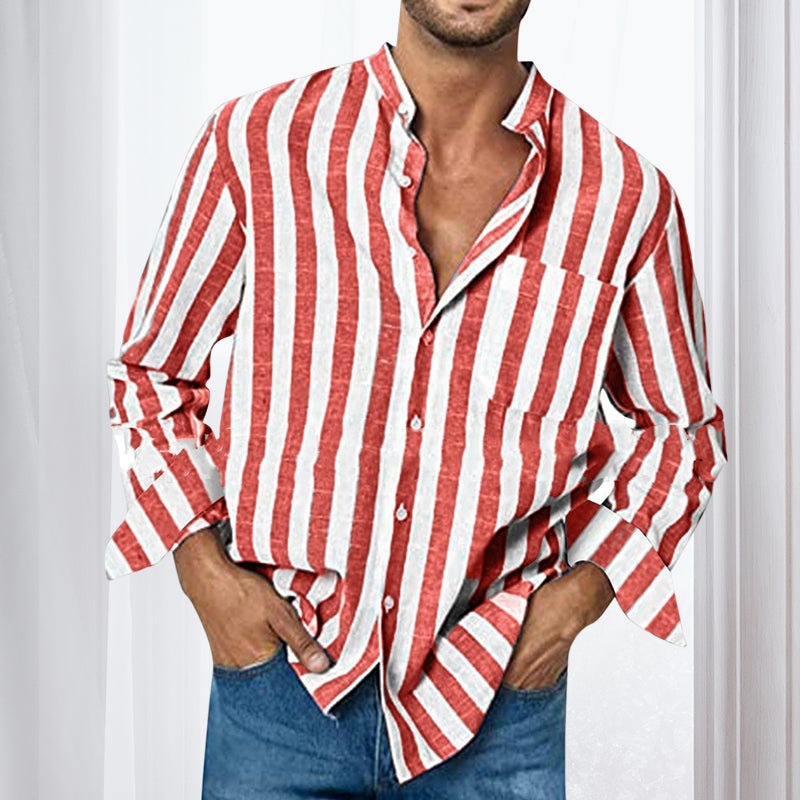 Paires: Chemises boutonnées à manches longues pour homme parfaitement assorties à des t-shirts rayés, jeans, shorts, blazer sportcoat. C'est un article de collocation essentiel dans la garde-robe des hommes