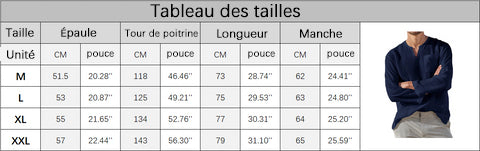 Taille de la chemise à manches longues : veuillez vous référer à la taille sur l'image pour choisir celle qui vous convient.