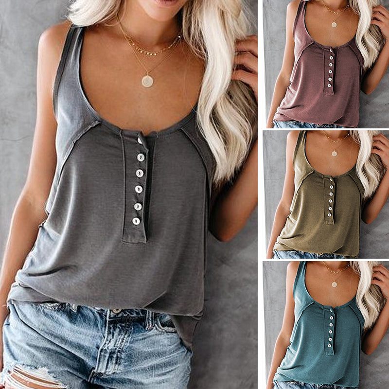 • 1 * Chemise décontractée sans manches de couleur unie