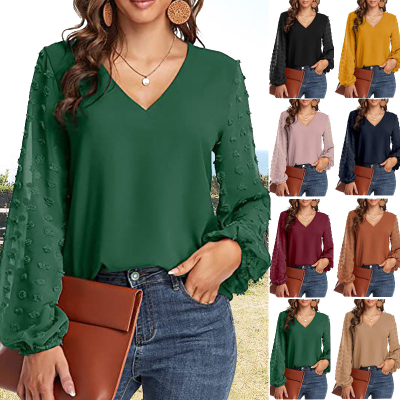 Design unique - Les chemisiers tuniques d'été pour femmes Col en V, manches longues à volants et chemises à pois sont des hauts élégants et élégants pour femmes, ils peuvent attirer l'attention des gens autour de vous et vous rendre plus attrayant.
