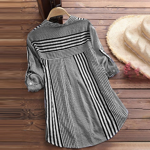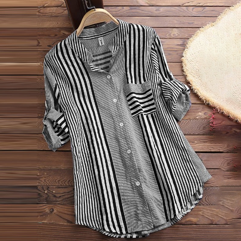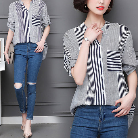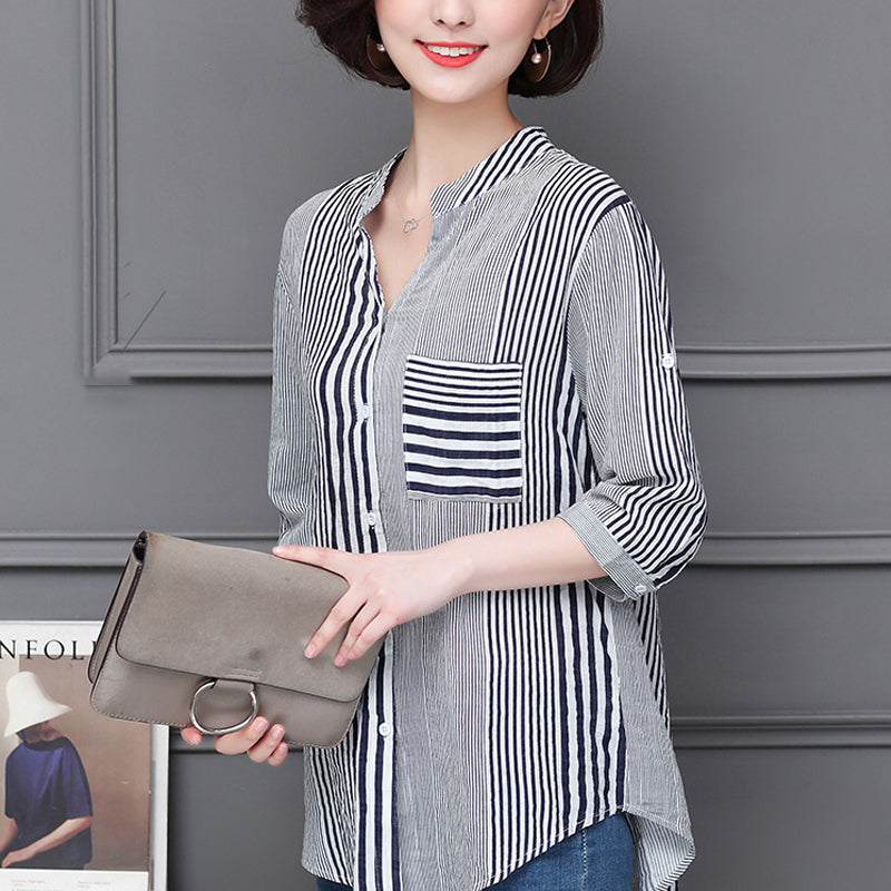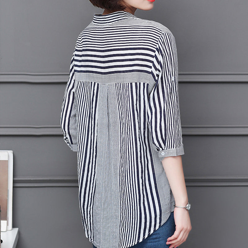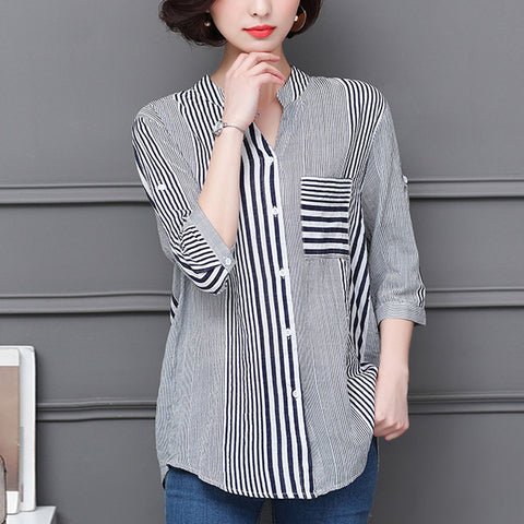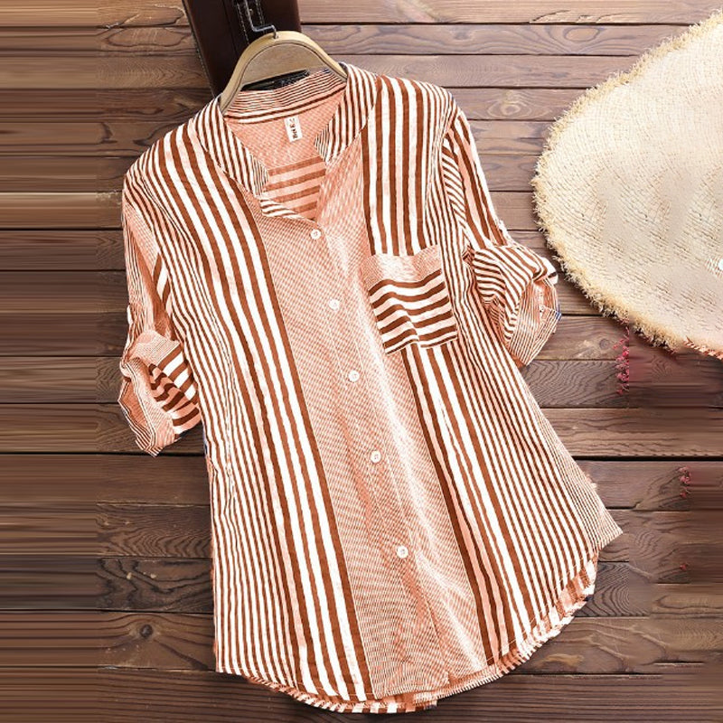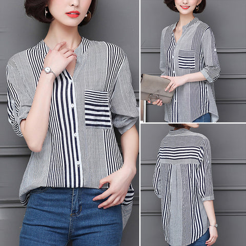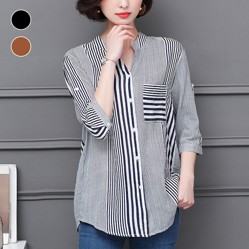 Paquet: Chemisier à rayures et col montant à manches 3/4 * 1