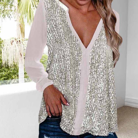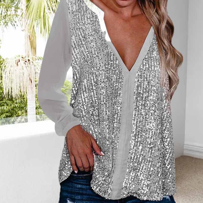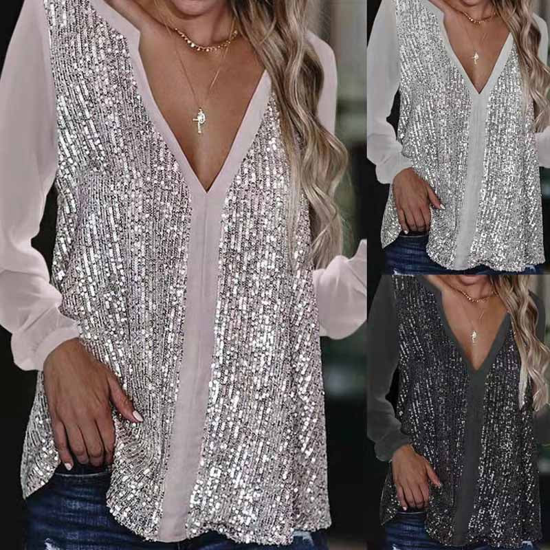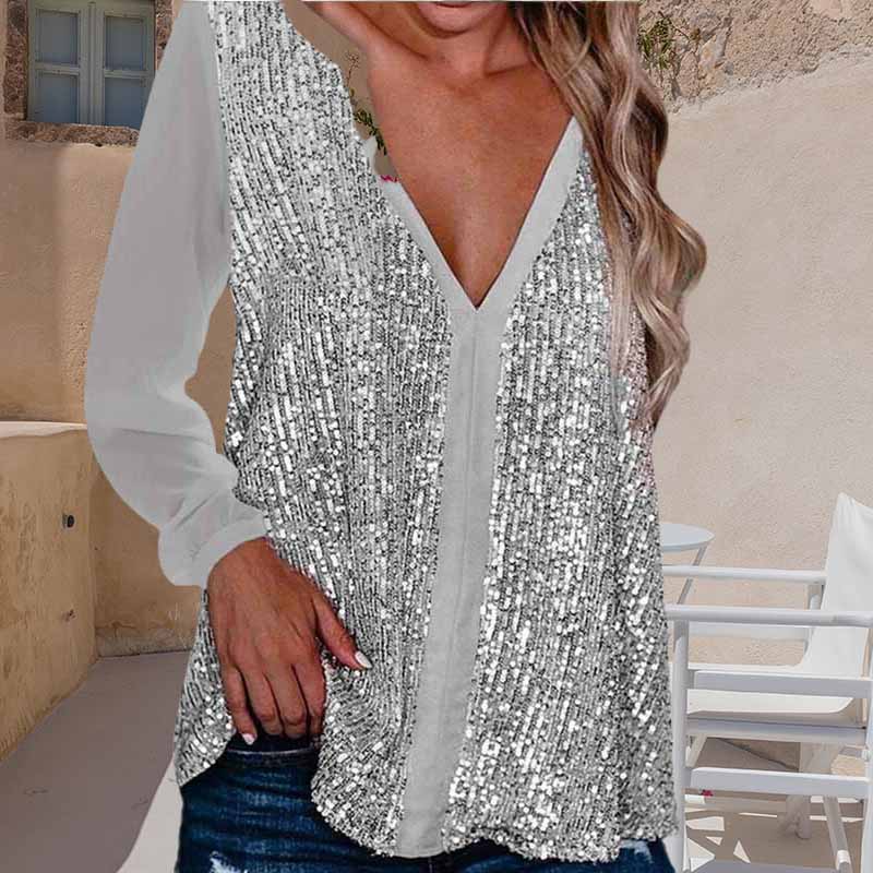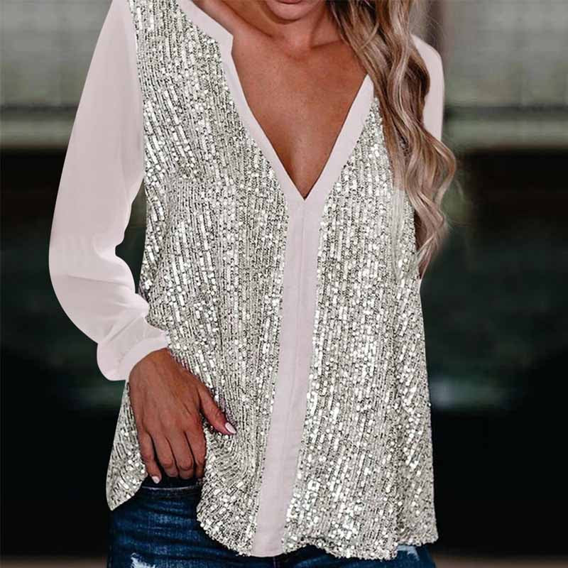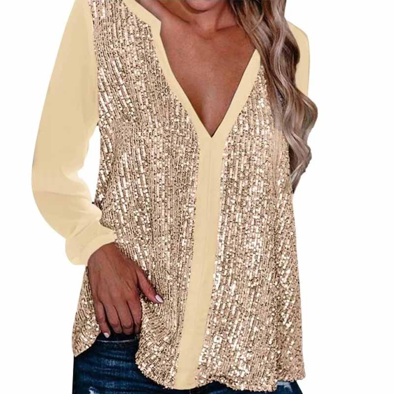 Paquet: Chemisier à manches longues et paillettes à col en V * 1