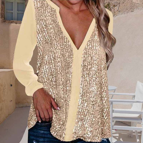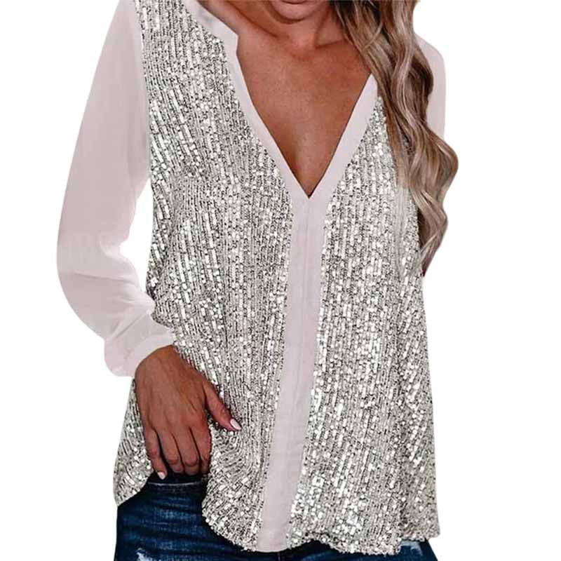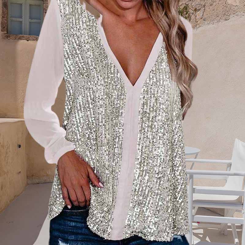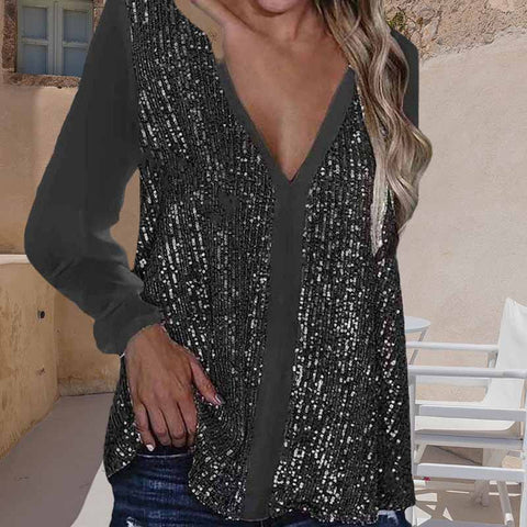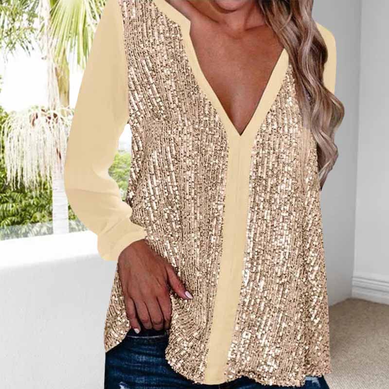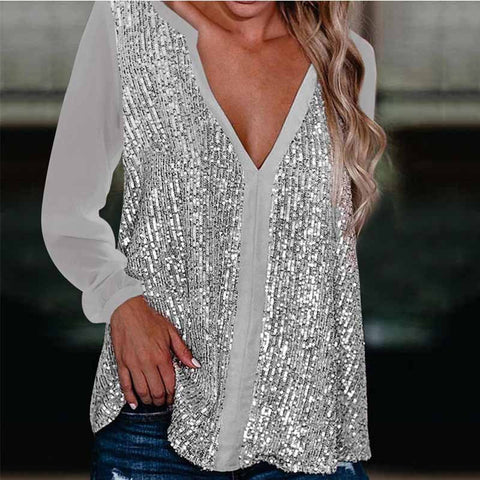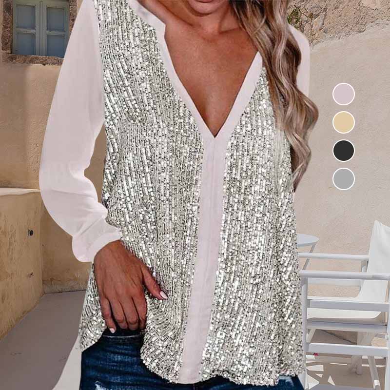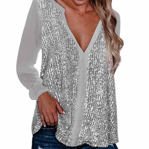 Paquet: Chemisier à manches longues et paillettes à col en V * 1