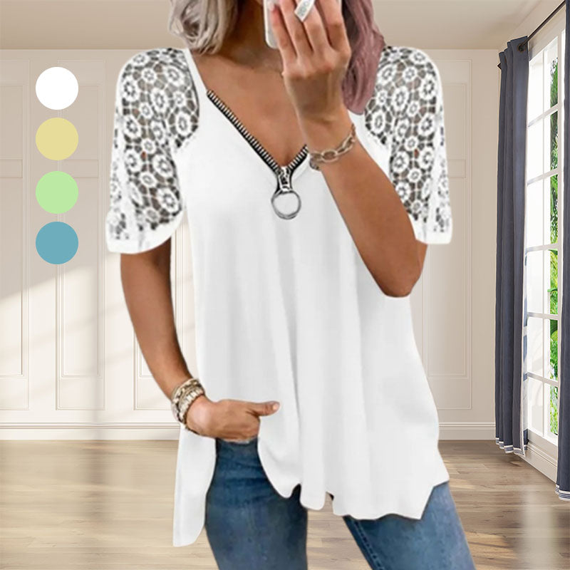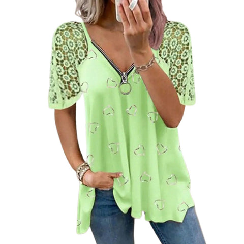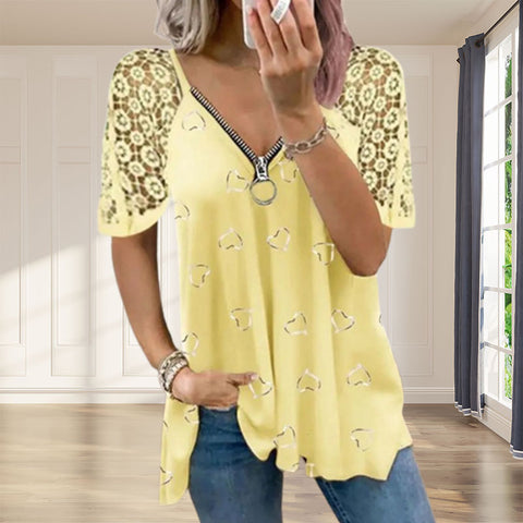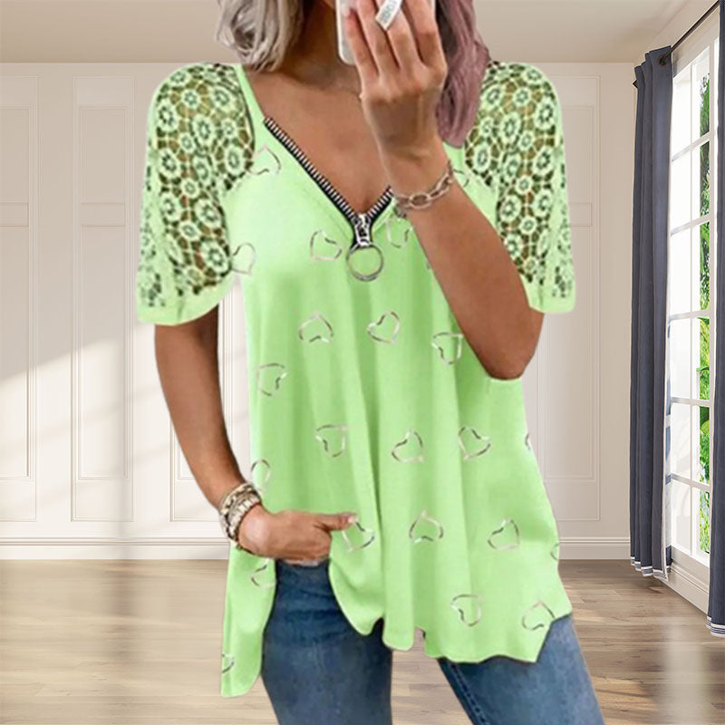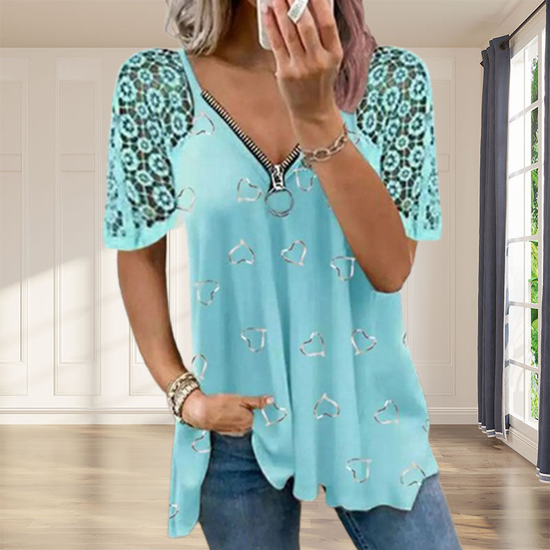 Chemisier motif coeur avec manches en dentelle avec fermeture éclair