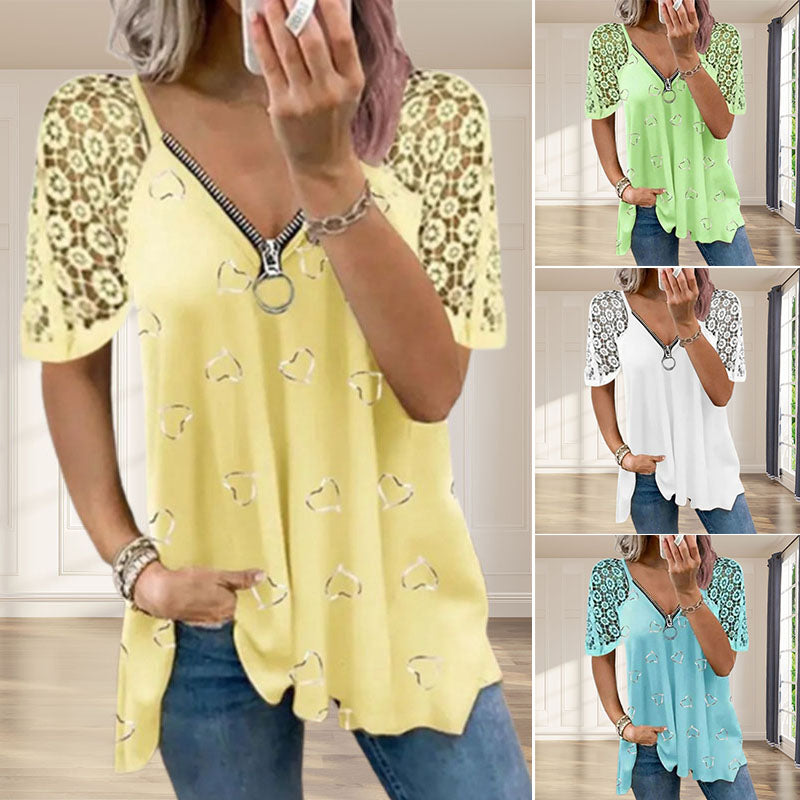 • Le forfait comprend: 1 × Chemisier motif coeur avec manches en dentelle avec fermeture éclair