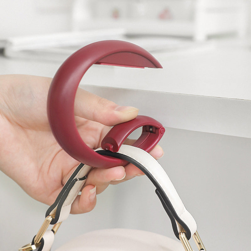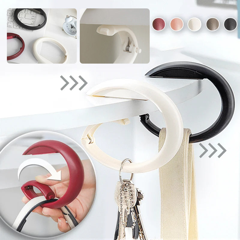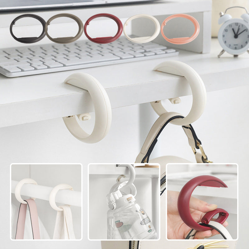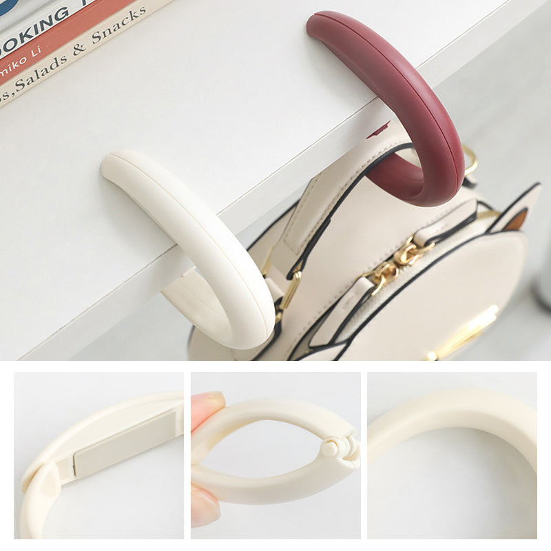 Un crochet circulaire innovant qui peut maintenir en toute sécurité vos précieux sacs à main sur différents bords de table. Vous offrant un rangement suspendu pratique et instantané à portée de vue, même lorsque vous êtes dans des espaces publics. Empêchez vos sacs d'être placés sur des surfaces sales et collantes ou d'être maladroitement pressés à côté de vous lorsque vous êtes assis.