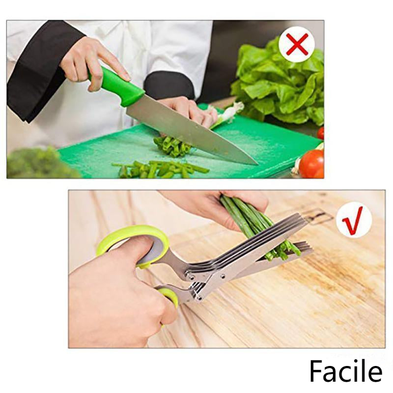 - 【UNE BONNE AIDE DANS LA CUISINE】 Vous pouvez couper les poivrons, la coriandre, le varech, les oignons verts, etc. Vous pouvez cuisiner des plats de haut niveau simplement. C'est une bonne aide pour votre cuisine.