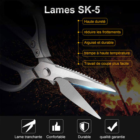 Ciseaux de cuisine multi-usages - Ciseaux de cuisine super tranchants et résistants avec prise ergonomique. Il est largement utilisé comme ciseaux alimentaires, ciseaux à viande, ciseaux de cuisine, cisailles de cuisine, cisailles à volaille, etc.
