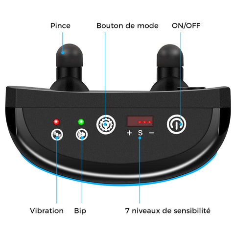LE COLLIER FONCTIONNE POUR METTRE LE CHIEN EN PLACE: Le collier est Ă©quipĂ© d'un microphone qui dĂ©tecte lorsque votre chien aboie. Le collier Ă©met un son lĂ©gĂšrement dĂ©sagrĂ©able et une vibration indolore. Lorsque le chien cesse d'aboyer, le son et la vibration s'arrĂȘtent.