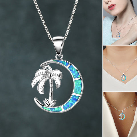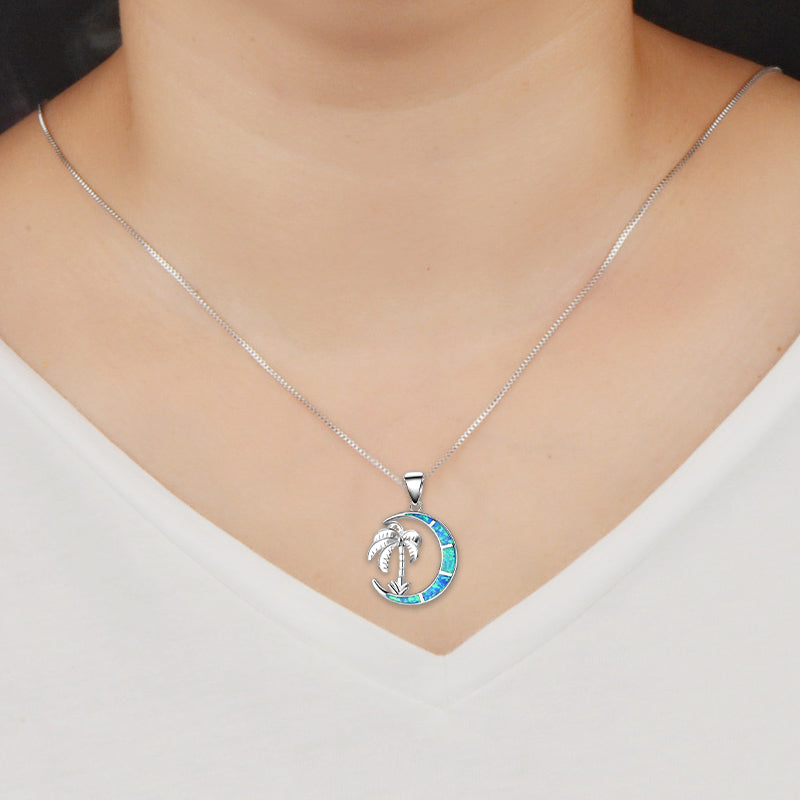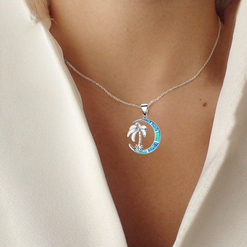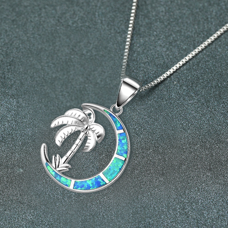 - Un collier simple et élégant, charmant, en forme de cocotier bleu lune, avec de superbes couleurs bleues et vertes. La branche de palmier est également un symbole de victoire, de triomphe, de paix et de vie éternelle. Beau, confortable et facile à porter, c'est le parfait collier de tous les jours pour les femmes et les filles.