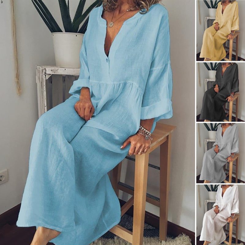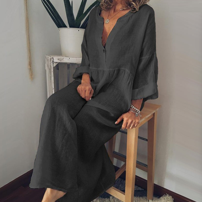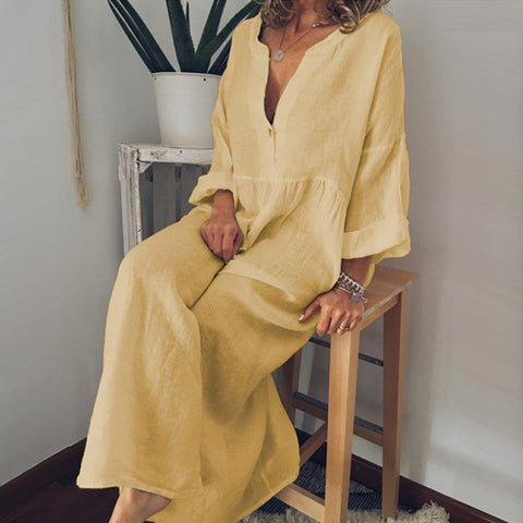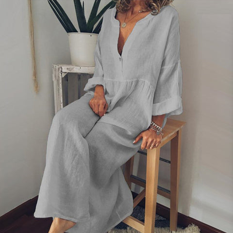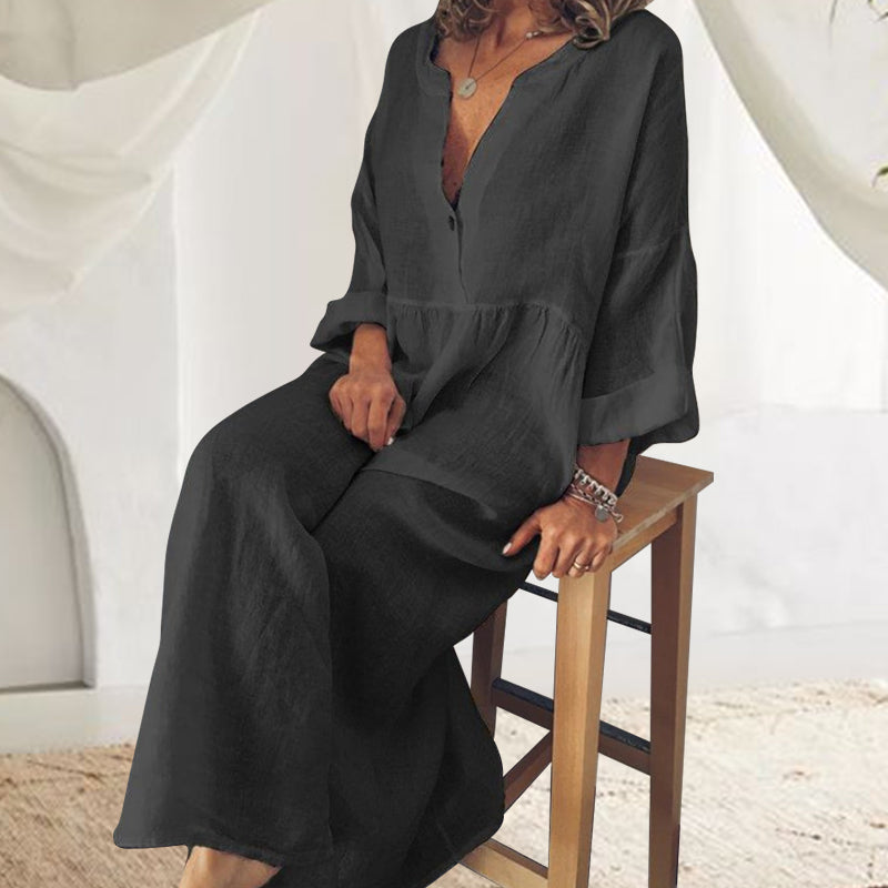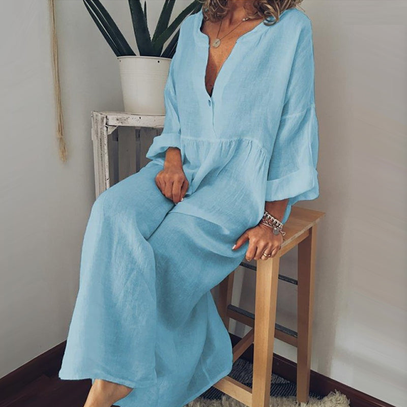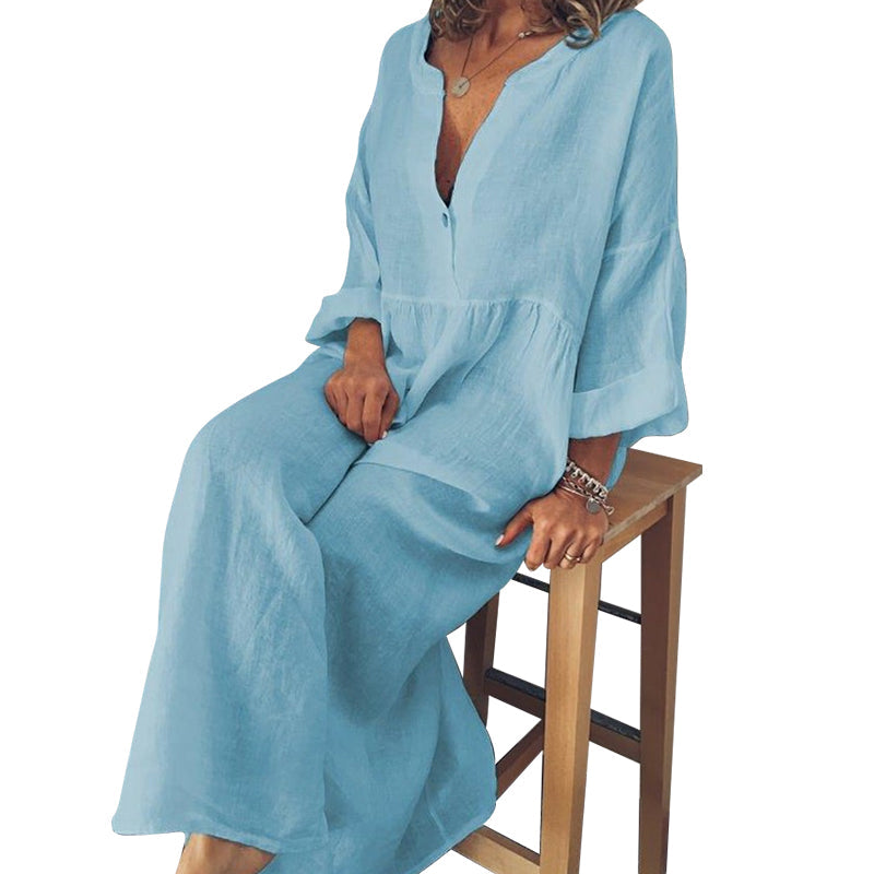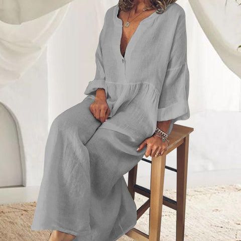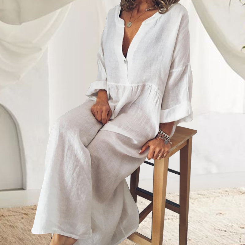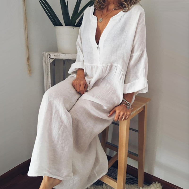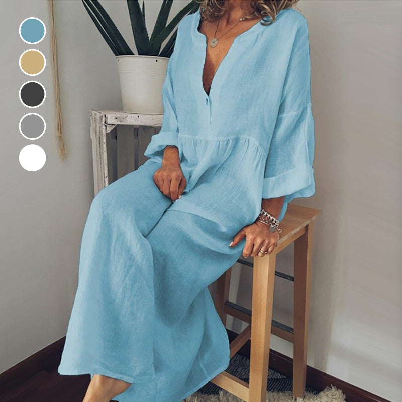 - 1 * Combinaison à manches longues en coton et lin