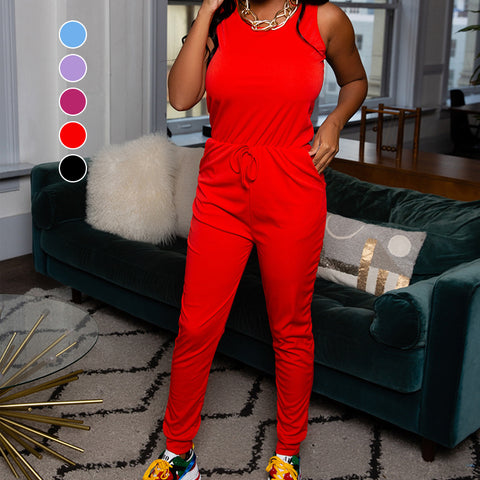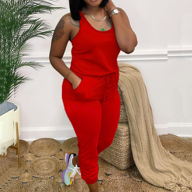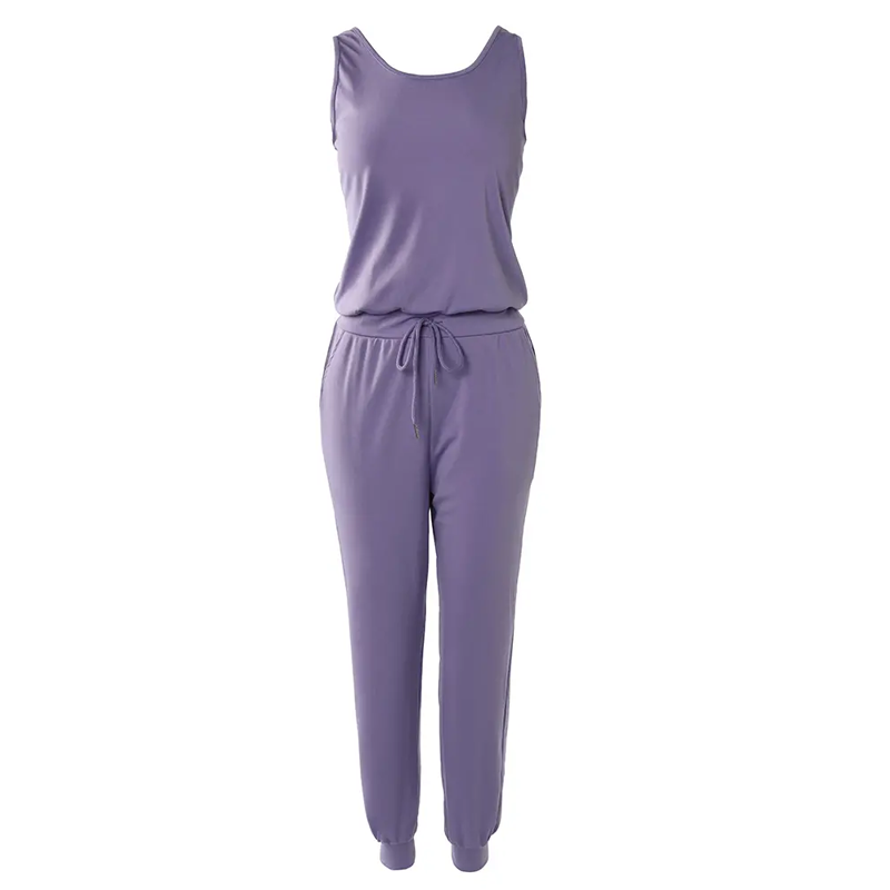 Combinaison décontractée sans manches avec cordon de serrage et col en U