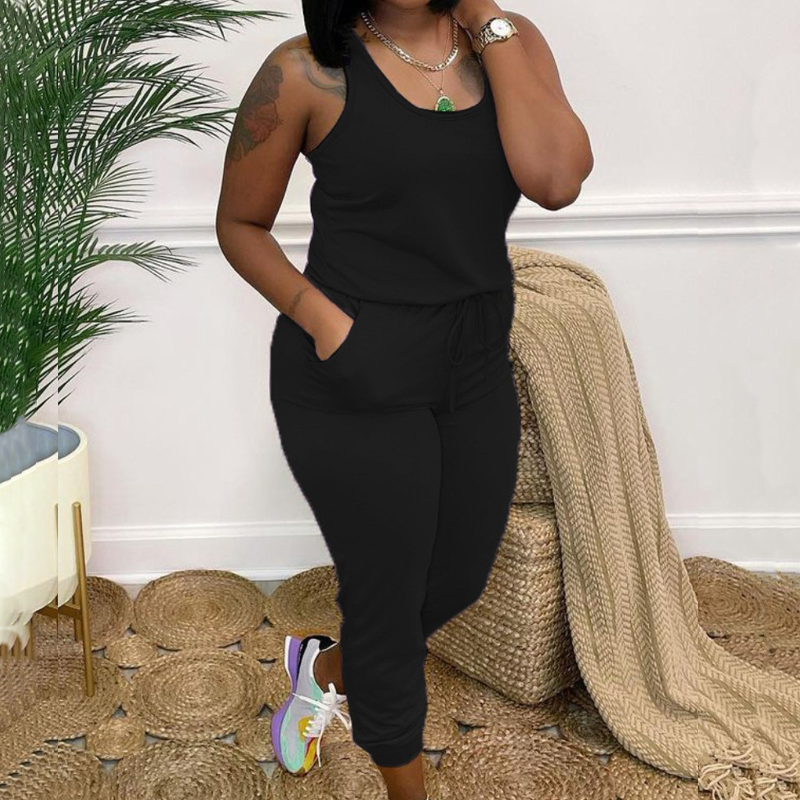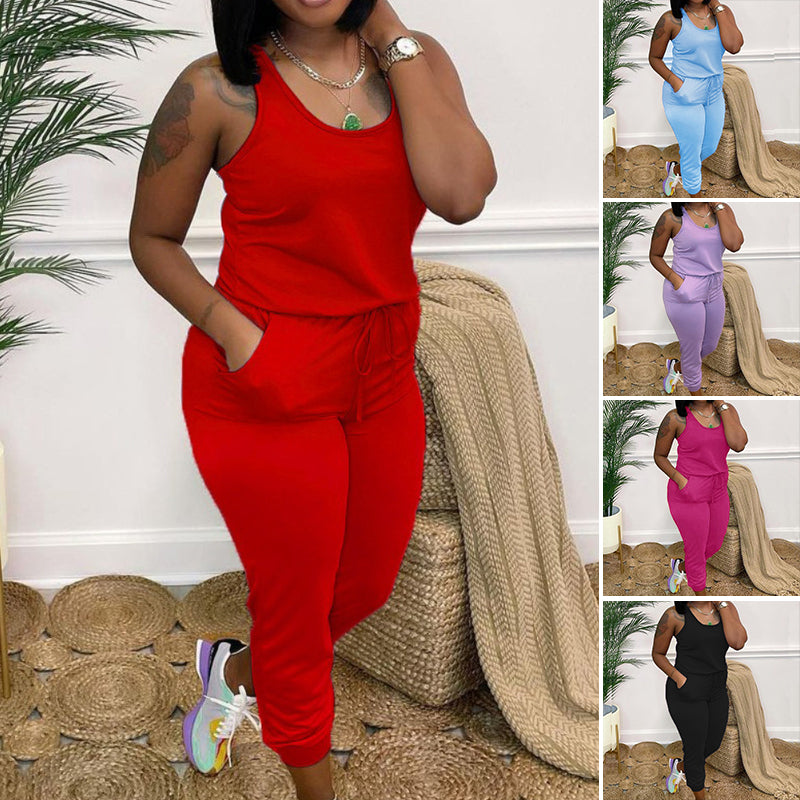 • Extensible, doux, confortable à porter ; Combinaisons décontractées sans manches grande taille pour les jours d'été, couleurs unies classiques, combinaisons une pièce confortables。
